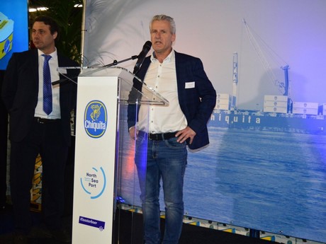 Tholen – De Chiquita Trader ligt aan de kade. Kranen hijsen de containers van boord en plaatsen deze op een chassis, waarna de reefers naar de opslag worden gereden. Het schip kwam gisteren (18 februari) binnen in de haven van Vlissingen en was daarmee het eerste volledig gecontaineriseerde schip van Chiquita dat de Zeeuwse haven aan deed. De Chiquita Trader werd feestelijk ontvangen door Kloosterboer. “Het is de start van een nieuw tijdperk,” onderstreept zowel Stefano di Paulo (The Great White Fleet) als Jack Kloosterboer (Kloosterboer).