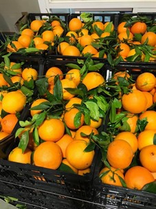 Ook de sinaasappelen hebben lage prijzen, maar de markt is goed, zeker gezien het koude weer. "De rassen die bestemd zijn voor Italië zijn Navel Lane Late, Chislett, Navel Powell en Valencia Late. Voor een kilo kwaliteitssinaasappelen met blad betaal je €0,38 à €0.43. Het is duidelijk dat de telers nog minder ontvangen, ongeveer €0,17 tot €0,24 zonder dat er rekening wordt gehouden met al het werk dat eraan vooraf is gegaan", zegt Giuseppe.