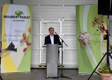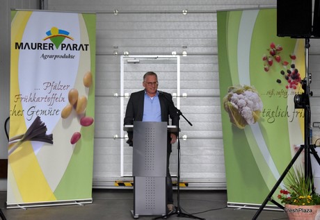 Na het officiële welkomstwoord door Maurer/Parat-directeur Ludwig Hartmann sprak Hartmut Magin, de nieuwe eerste voorzitter van de vereniging 'Pfälzer Grumbeere'. Hij gaf een inschatting van de actuele situatie vanuit de telers in de regio gezien. De magazijnen zijn leeg en men hoopt op een goede prijs. Vaak wordt men als teler geconfronteerd met kritiek op een te hoge beginprijs. Hij wil met de vereniging echter de belangen van de telers ondersteunen. "Ik wens me voor het komende aardappeljaar dat we goed en open met elkaar om blijven gaan."
