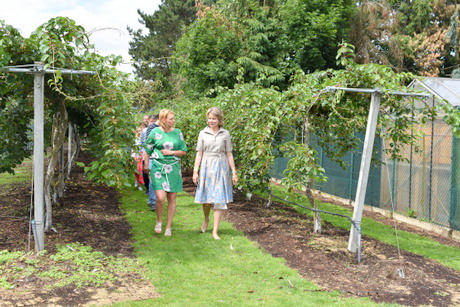 Inge en koningin Mathilde wandelen naar de kiwibesplantage