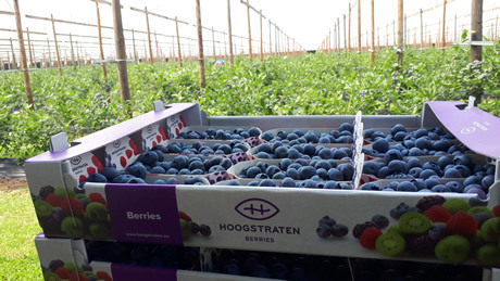 In de Kempen waren er toen nog maar twee blauwebessentelers en in overleg met Coöperatie Hoogstraten - waar wij ook onze tomaten afzetten – zijn we gestart met de blauwe bessenteelt. Op de locatie bij de tomatenkassen telen we een vroege variëteit blauwe bessen op substraat. Op de andere locatie hebben we anderhalve hectare vollegrondsteelt. Momenteel hebben we 1,7 hectare blauwe bessen in totaal die we van begin juli tot begin oktober kunnen leveren.”
