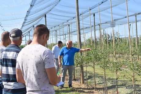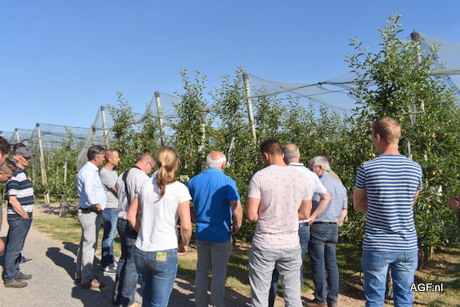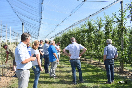 Tholen – Tijdens de NFO studiereis bezochten Zeeuwse en Brabantse fruittelers Proeftuin Klein Altendorf. Gerhard Baab leidde het gezelschap rond en startte bij de Morgana in aanplant. “Morgana is de merknaam van het ras Kizuri dat door Better3Fruit uit België is ontwikkeld. In Duitsland staan momenteel 120.000 bomen, waarvan 55.000 bij de firma Krings. Morgana heeft een vergelijkbare productie als Jonagold en heeft geen beurtjaren”, vertelde Gerhard Baab.