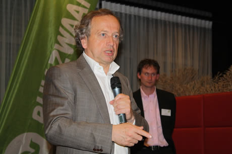 Met staatssecretaris Bleker kreeg het 2012.Komkommer.event gisteren een heuse topspreker. De staatssecretaris sprak in het Miele Inspirience Centre in Vianen over consumentenvertrouwen in de komkommers, maar gaf de tuinders ook de nodige waarschuwingen ("spreek rommelaars aan!"), hoop ("wij staan achter jullie!") en humor mee ("Ik moet om 22.00 uur thuis zijn, want ik heb tegenwoordig weer een vriendin"). Aan het eind van de avond kreeg Bleker hiermee dan ook de tuindershanden op elkaar.