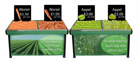 In één variant werden de afwijkende producten als duurzame producten gepresenteerd door expliciet de nadruk te leggen op de voordelen van het kopen van suboptimale producten (zoals het tegengaan van voedselverspilling).