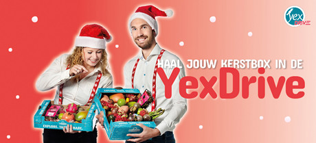 Op zaterdag 21 december verrijst bij Yex (ABC Westland 120) in Poeldijk de YexDrive, geheel in kerstsferen. Tussen 10:00 en 14:00 uur kunnen alle bestellingen worden opgehaald door langs te rijden zonder uit te hoeven stappen.