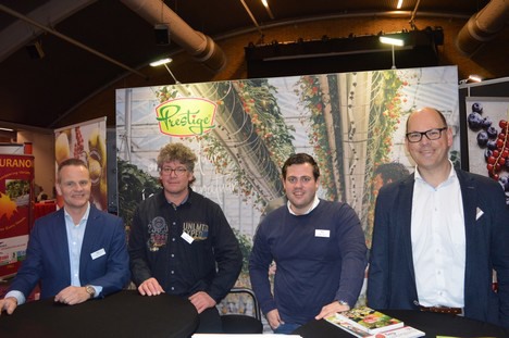 Johan Van Alphen van Special Fruit liep even langs bij Coöperatie Hoogstraten waar Marcel Biemans en Peter Rombouts de stand bemanden