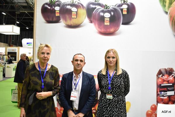 Ellen van Kester, Pepe Lorente en Patricia Gomzez van Horticola Guadalfeo tijdens de Fruit Attraction