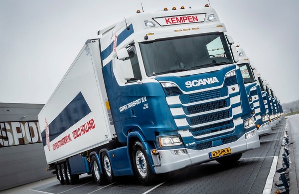 Logistiek dienstverlener Kempen Transport kreeg onlangs de eerste negen Scania’s uit een order van twaalf stuks afgeleverd. Het betreft hier acht S500 6x2 trekkers met een gestuurde hefbare voorloopas en één Scania S540 6x2 trekker. Daarmee heeft Kempen de primeur dat hij één van de eerste met de tot nu toe sterkste zescilinder SCR-only motor van Scania heeft. Alle voertuigen zijn in stijl van Kempen Transport, rijk uitgevoerd.