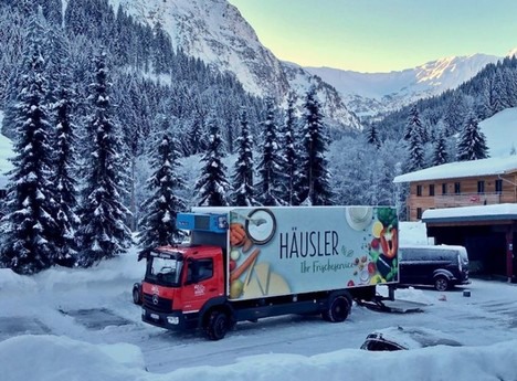 Een vrachtwagen in het winterse Allgäu / Foto: Obst Häusler GmbH