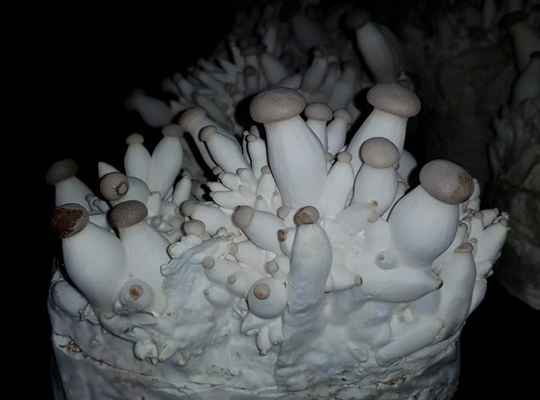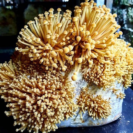 De enoki of het "fluweelpootje" circa twee dagen voor de oogst