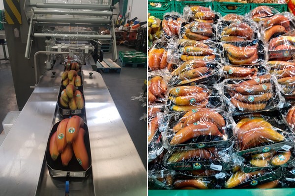FAST biedt de rode banaan dit seizoen aan in een milieuvriendelijke kartonnen verpakking met composteerbaar flowpack met het opschrift "Ik ben geen plastic". Auchan Retail Spanje lanceerde in november vorig jaar een assortiment onder het huismerk “Gecontroleerde Alcampo Productie” met 100% lokaal fruit (van de Canarische eilanden) zoals avocado, mango, passievrucht, boomtomaat (tamarillo) en papaja.