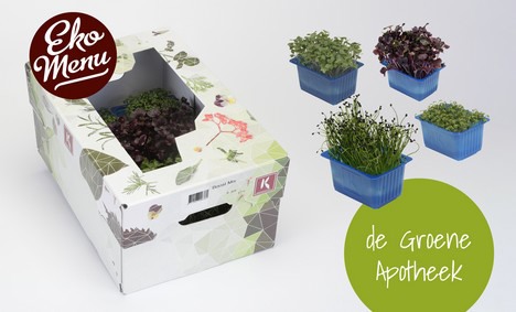 Ekomenu introduceert de ‘Groene Apotheek’ in samenwerking met Rob Baan van Koppert Cress. De Boost Mix van Koppert Cress bevat 4 soorten kiemgroenten die vol zitten met vitaminen en mineralen.