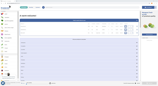 "Helemaal af is het systeem natuurlijk nooit. Uiteindelijk is het doel dat de verkopers niet meer in een apart systeem, maar via MyKraaijeveld gaan verkopen. We hebben nu een handelsplatform waar klanten kunnen bestellen, bestellijsten aan kunnen maken, orderhistorie kunnen vinden, fust retour kunnen melden, certificaten kunnen aanvragen, claims kunnen indienen en nog veel meer, maar daarmee stopt het niet. Inmiddels hebben we de contractmodule uitgebreid en we zijn nu bezig om een leveranciersplatform in te richten. Hiervoor zijn we nog op zoek naar meer partners om mee samen te werken’’, vertelt Joost.