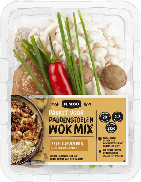 De paddenstoelen wokmix van Jumbo zit sinds week 37 van vorig jaar in het assortiment. "Jumbo wil lekker en gezond eten makkelijk en bereikbaar maken voor iedereen. We weten dat onze klanten het soms wat spannend vinden om met een shiitake of cantharel te koken. Met deze wokmix willen we consumenten meenemen en ze eenvoudig laten zien wat ze ermee kunnen in de keuken."