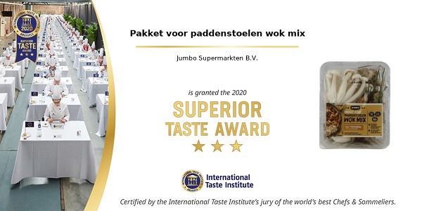 Tholen - Het pakket voor paddenstoelen wokmix van Jumbo heeft de maximale score van drie sterren gekregen van Superior Taste Award. Chefs en sommeliers komen volgens een strikte proefmethodologie tot een oordeel die 100 procent gericht is op smaak. Drie sterren is daarbij de hoogste score. Ook de verschillende kleuren Sweet Palermo van Rijk Zwaan kregen awards toegewezen.