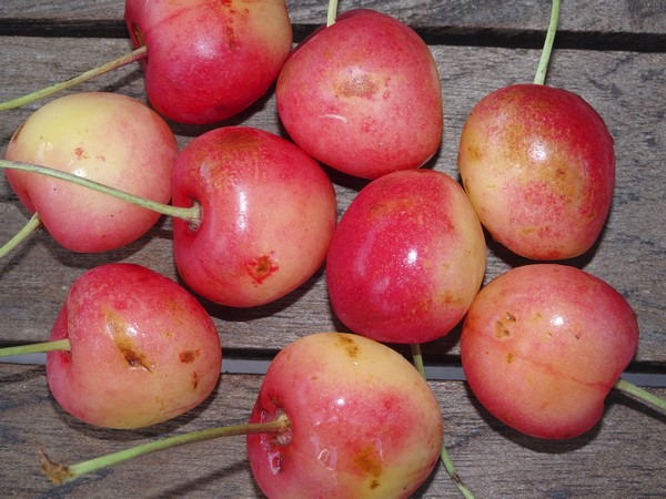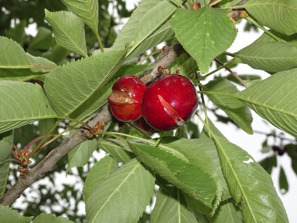 De schade aan de Bigarreau Napoleon na de hagelbui van vorige week.