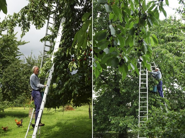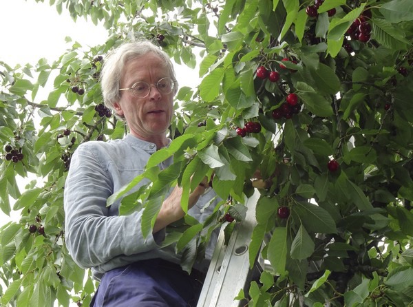 Peter vertelt dat veel kwekers inzetten op het kweken van kersen op laagstam in beschermende tunnels, waarin ze beter beschut zijn tegen neerslag en insecten. "Dit is echt niet hetzelfde. De smaak is anders en je mist de charme van de bloesems in de lente. Wij zullen altijd blijven inzetten op hoogstamfruit. Zowel kersen, als krieken, als appelen en peren - oude variëteiten met een ongelooflijk rijk aroma en smaak. Ik geloof nog steeds in een goed ecosysteem door te zorgen voor biodiversiteit in de boomgaard."