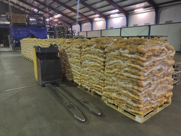 De aardappelen klaar om te verladen bij Quiks Hedel