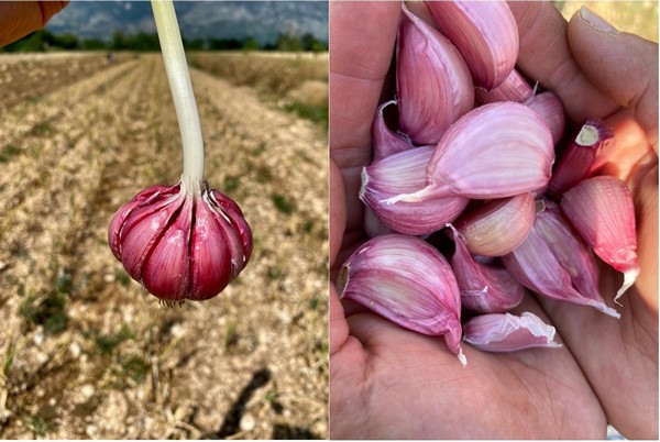 Dit jaar is de knoflook van D'Alessandro dus bijzonder aromatisch en rood van kleur, met nog meer uitgesproken nuances. "Het is eigen aan het product en de omgeving waarin het wordt geteeld, hier in de Peligna-vallei, maar dit jaar, dankzij het weer, zijn alle kenmerken van onze knoflook, nog duidelijker aanwezig."