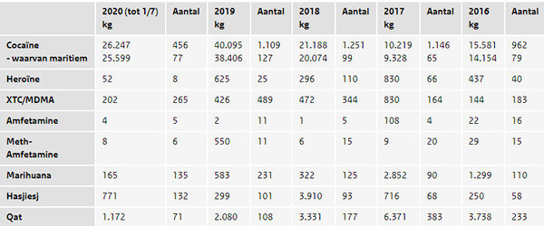 De toename betreft de havens van Rotterdam en Vlissingen. Hier heeft de Douane in de eerste helft van dit jaar in totaal 25.599 kg cocaïne, verdeeld over 77 zendingen, in beslag genomen. In de eerste helft van 2019 was dit 12.160 kilogram cocaïne in 60 zendingen. Dit houdt in omvang een stijging in van meer dan 100%. De grootste maritieme bevinding in de afgelopen periode betrof een vangst van 4.515 kilogram cocaïne in Vlissingen.