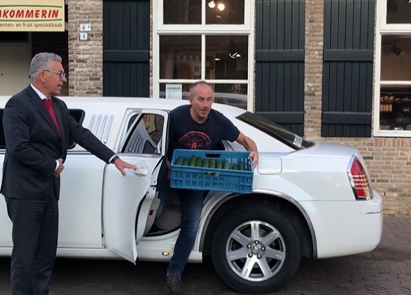 Tholen – De wereld op zijn kop bij de Komkommerin. Na een carrière van 30 jaar in als AGF-specialist gaat Carl Graumans niet met de vrachtwagen naar de veiling om komkommers te halen, maar met de limousine. Dat is althans de suggestie op Facebook. “Af en toe even ludiek de aandacht om jezelf vestigen, dat is wat we af en toe graag doen. Onze naam alleen al geeft dat aan Komkommerin”, lacht Carl.
