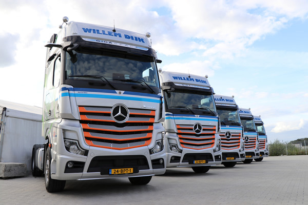 Afgelopen donderdag 10 september 2020 zijn er door Baan Twente vijf nieuwe Mercedes Actros trekkers afgeleverd. Het betreffen Euro 6 motoren van het type 1845 LS met 450 PK. De trekkers zijn geleverd met een GigaSpace cabine. Ook hebben deze trekkers geen spiegels meer, maar zijn voorzien van camera’s. Zo kijkt de chauffeur op een scherm en heeft meer overzicht dan in een normale spiegel.