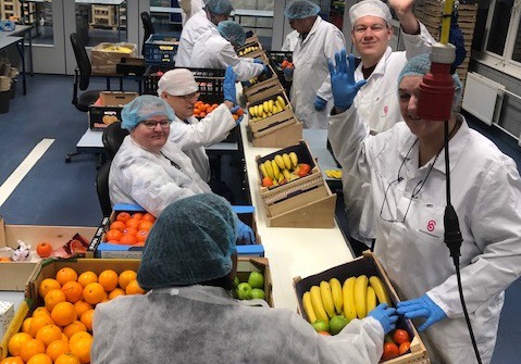 Mensen met een beperking pakken Deelfruitkistjes heel zorgvuldig in