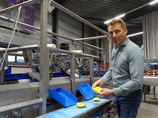Hans Keijzer, directeur van ZTI: ‘Toen we de Mango Peeler-de-Cheeker 40 op de markt brachten, was er direct wereldwijde belangstelling. Op de Fruit Logistica in Berlijn hadden we de machine tentoongesteld. De toeloop was enorm. We hebben drie dagen lang, continu demonstraties gegeven aan de stand-bezoekers. En ze reageerden enthousiast op de imposante machine. De verwerkingsmethode was helemaal nieuw. De mango’s vliegen letterlijk de machine door terwijl ze in de lengterichting geschild en ontpit worden. Belangrijk en bijzonder is dat de vrucht op de pit gedragen wordt. Het vruchtvlees blijft daardoor intact. En nog steeds word ik blij als ik het apparaat in werking zie! Het blijft een gaaf gezicht. Toch kregen we ook redelijk snel de vraag of de MPDC40 niet wat kleiner uitgevoerd kon worden. De 40 is wel echt een enorm apparaat die ook nog eens enorme hoeveelheden mango’s verwerkt. Een bedrijf dat minder mango’s schilt wil natuurlijk niet dat de machine de helft van de tijd stil staat en alleen maar ruimte inneemt’.
