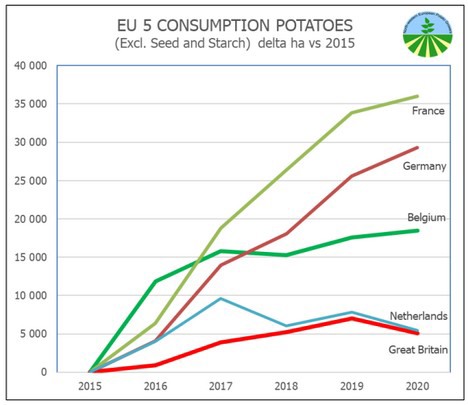 De ontwikkeling van het areaal van de afgelopen 5 jaar is voornamelijk gekoppeld aan de ontwikkeling van de vraag vanuit de industrie, die dat heeft doen stijgen. Vooral Frankrijk en Duitsland zagen het areaal de afgelopen vijf seizoenen aanzienlijk toenemen.