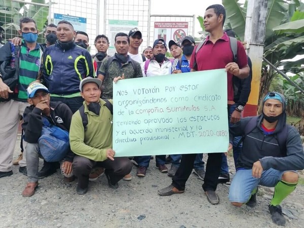 De coördinator van de bananen- en agro-industriële vakbonden eist dat Sumifrutas de 30 arbeiders weer aan het werk zet en dat de staat handhaaft wat de arbeidswet voorschrijft, evenals de internationale overeenkomsten die wijzen op de eerbiediging van de vrijheid van vereniging en het recht om werknemers te organiseren.