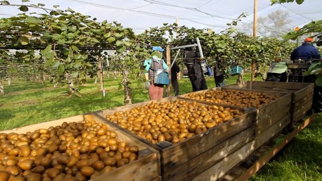 De oogst van gele kiwi's is eind september begonnen, terwijl die van groene kiwi's eind oktober al is begonnen. “We hebben dit jaar 500 ton gele kiwi's geoogst en staan op het punt de groene kiwi's te oogsten. Tot dusver zijn we best tevreden zijn, want lettend op de kwaliteit loopt het seizoen goed. We hebben kiwi's met een goed drogestofgehalte en een interessante brixgraad. Wel is het zo dat we vergeleken met vorig jaar een kleinere oogstopbrengst verwachten. Die verwachting heeft te maken met het gevolg van de overstromingen van vorig jaar die resulteerden in het afsterven van bomen op sommige percelen.”
