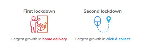 Waar tijdens de eerste lockdown thuisbezorging het hardst groeide, nam in de tweede lockdown de populariteit van click-en-collect het sterkst toe.