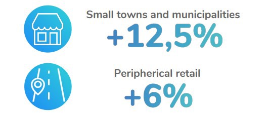 Klanten gaven massaal gehoor aan de #kooplokaal en #blijfthuis oproepen. Hierdoor zagen winkels in kleine gemeenten – die jarenlang kwakkelden – hun omzet met 12,5% stijgen, net als de makkelijk bereikbare winkels in de periferie (+6%).