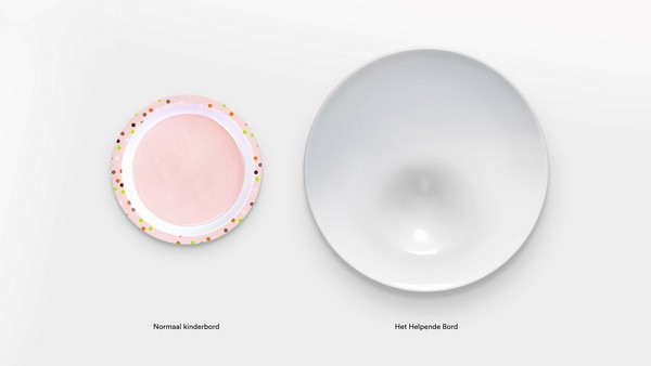 Het 'Helpende Bord' lijkt zo op het oog op een normaal bord, maar is dat toch niet. Het is weliswaar net als een bord voor volwassenen gemaakt van keramiek en vrijwel wit van kleur en rond, maar er zitten allerlei subtiele nudgingtechnieken in verwerkt waaronder een verdieping die speciaal voor de groenten bestemd is. Het kind wordt zo zintuigelijk op het verkeerde been gezet en verleid meer groenten te eten dan anders.