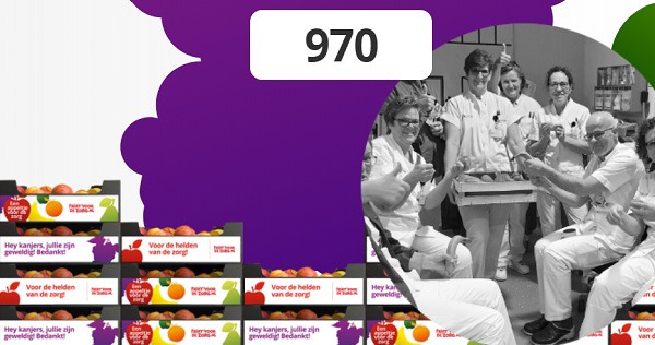 “Al de gehele coronaperiode steunen wij samen met onze klanten de zorg met vers fruit. Doordat onze klanten het fruit dat zij normaal op de werkvloer geleverd krijgen nu door ons in de zorg laten leveren. We hebben dat idee nu supergroots aangepakt en willen samen met ondernemend Nederland onze zorgmedewerkers in zoveel mogelijk ziekenhuizen met heerlijk vers fruit en een warme boodschap een fruitboost bezorgen! Ondernemend Nederland maar ook particulieren kunnen op onze site www.fruitvoordezorg.nl het aantal fruitboxen doorgeven dat ze willen aanbieden aan het ziekenhuis naar keuze. Hierdoor kan men lokaal de zorgmedewerkers steunen. Ook kan men hier het bedrijfslogo uploaden en een eigen boodschap achterlaten op de fruitboost. Hiermee hopen we van deze tijd, die smaakt als een zure appel, toch iets nuttigs te maken en de zorg met elkaar een hart onder de riem te steken. De teller staat na de lancering afgelopen week al op ruim 970 fruitboxen met meer 36.000 stukjes fruit voor onze toffe zorgperen. "