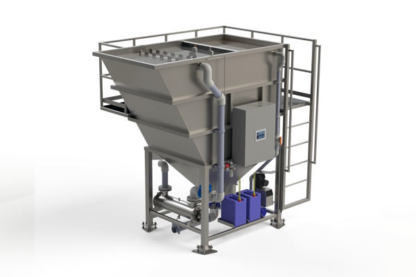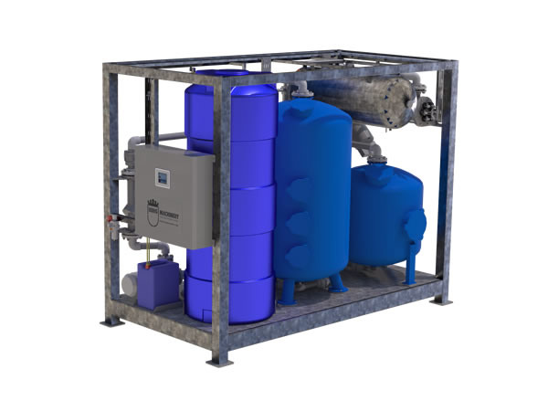 DE BLS-6 (lamellenfilter) werkt door middel van voorfiltering met een vlokmiddeldosering en heeft een lamellenpakket van 6 kuub per uur. Beide filters hebben UV-desinfectie systeem