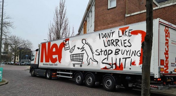 ‘Bekladde’ vrachtwagens Nedcargo blijken werk van Banksy