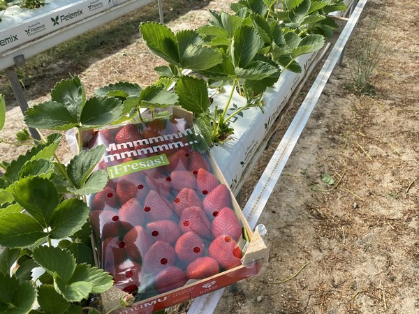 "We zijn eind mei begonnen en momenteel hebben we al aanzienlijke dagvolumes. Vorige week zijn we ook van start gegaan met frambozen", zegt Jimmy Esteban, commercieel directeur van El Pinar, dat 42 jaar geleden begon als vermeerderingsbedrijf en die activiteit nog steeds uitvoert. "We telen frambozen, bramen, blauwe bessen, rode bessen en physalis, maar in de zomerperiode is de aardbei ons belangrijkste product. Hier in Segovia hebben we meer dan 60 hectare aardbeienteelt."