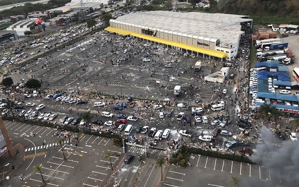 Een geplunderd opslagstation in Durban vanuit de lucht, zoals vanochtend gezien door eNCA-verslaggever Dasen Thathiah (bron: Twitter)