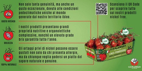 “Onze certificering geldt voor ons hele tomatenassortiment: cherrytomaten, datterino tomaten, midi-pruimtomaten, zachte ronde tomaten, Coeur de Boeuf tomaten, speciale tomaten en gekleurde mixen. De certificering is er ook voor aubergines: ronde, paarse en lange. Met deze gewassen onderscheppen wij een nichesegment van consumenten die aan nikkelallergie lijden. Dit is een probleem dat meer dan 5% van de bevolking treft”, zegt Salvatore Astuto, commercieel directeur van de telersvereniging.