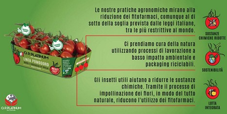 De Siciliaanse telersorganisatie OP Platinum lanceert een nieuwe verpakking die aantrekkelijk en functioneel is, met als doel om te voldoen aan de duurzaamheidsvereisten, maar ook om te communiceren met de consument door middel van een verklarende infografiek die elk detail van het productieproces toelicht.