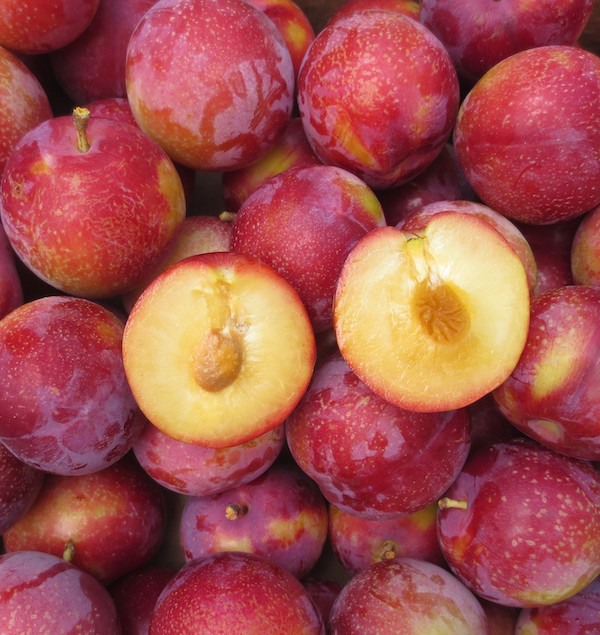 Coquine, een vroege pruim met een zeer aromatische en zoet rood vruchtvlees