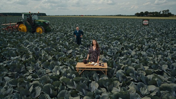 Met Elise Schaap in de nieuwe commercial zien we een voor de kijker vertrouwde HAK omgeving: een typisch Nederlandse akker waar in dit geval rode “groene” kool wordt geteeld. Met de komst van Elise zijn ook de vertrouwde HAK grapjes en signatuur van weleer terug waarmee HAK commercials tot vandaag de dag nog steeds worden geassocieerd. Van meneer In ’t Veld (voorheen meneer De Haan), die dit maal vanuit zijn rode kool veld ‘groentje’ Elise van commentaar dient, tot de bekende aftiteling ‘Je moet de groenten van HAK hebben’.