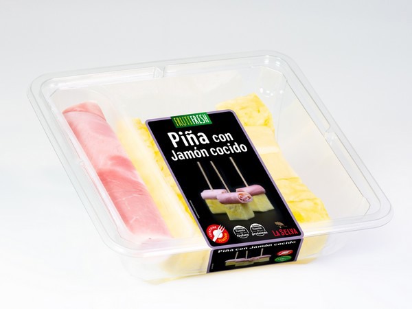 Het Spaanse agrovoedingsbedrijf Vicente Peris heeft een nieuwe combinatie van geselecteerd fruit en fijne vleeswaren gelanceerd: ananas met gekookte ham. Het nieuwe product, dat op de markt wordt gebracht onder de merken Peris en Frutifresh, moet een stevig tussendoortje worden dat qua voedingswaarde heel uitgebalanceerd is. Het fruit zorgt voor vezels en vitamines en de ham voor proteïnen. Met ongeveer 62 kcal per 100 gram is het overigens caloriearm.