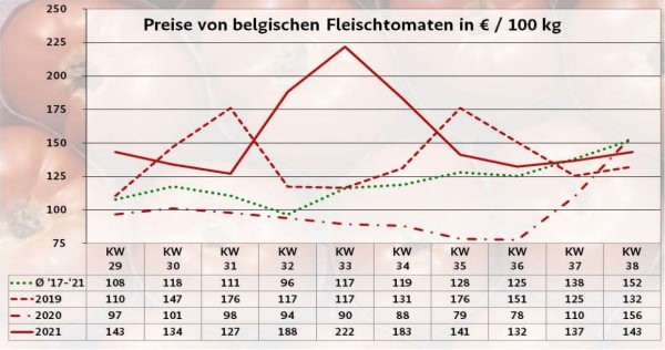 In de categorie ronde tomaten domineerden Belgische en Poolse goederen, terwijl Nederlandse en lokale producten het assortiment aanvulden. Het aanbod was betrekkelijk ruim en kon gewoonlijk zonder problemen aan de vraag voldoen. Over het algemeen nam de verkoop wat toe, zodat handelaars hun prijzen konden verhogen.