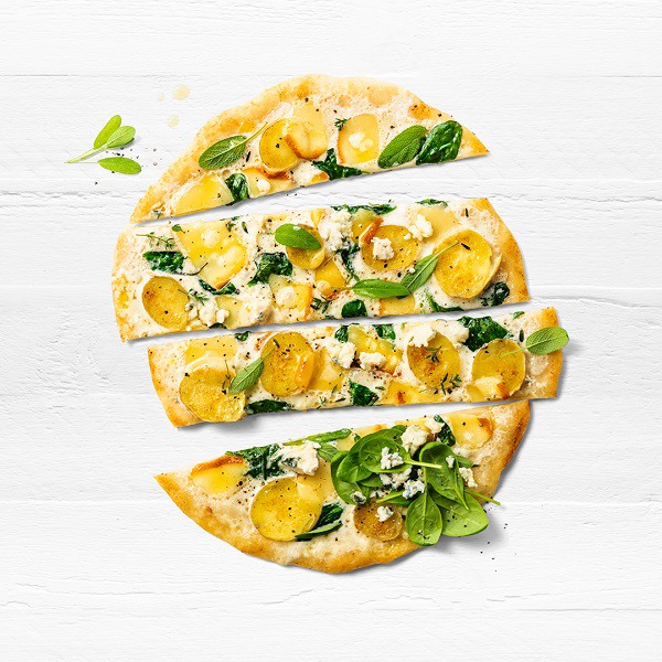 Pizza met aardappelen en blauwe kaas