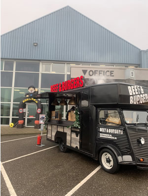 Er worden broodjes hamburgers uitgedeeld aan elke collega, chauffeur en bezoeker tussen 11.00 – 15.00 uur!