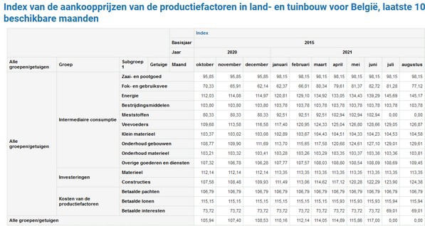 De Belgische landbouw sluit het jaar 2021 in december af met een stijging van 3,7 procent ten opzichte van november voor de globale index van afzetprijzen.