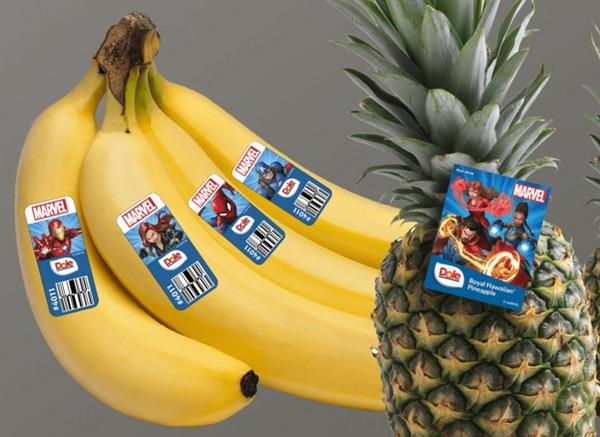 In winkels in Canada en de VS zullen de bananenstickers en ananasetiketten van de Dole Healthy Heroes, Assemble!-actie het meest in het oog springen. Op deze verzamelstickers staan de Marvel-helden afgebeeld.