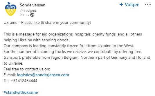 Deze update kunnen we weer veelvuldig schrijven over de nodige hulpacties voor de getroffenen. Zo heeft ook SonderJansen een actie op touw gezet voor transport naar Oekraïne: